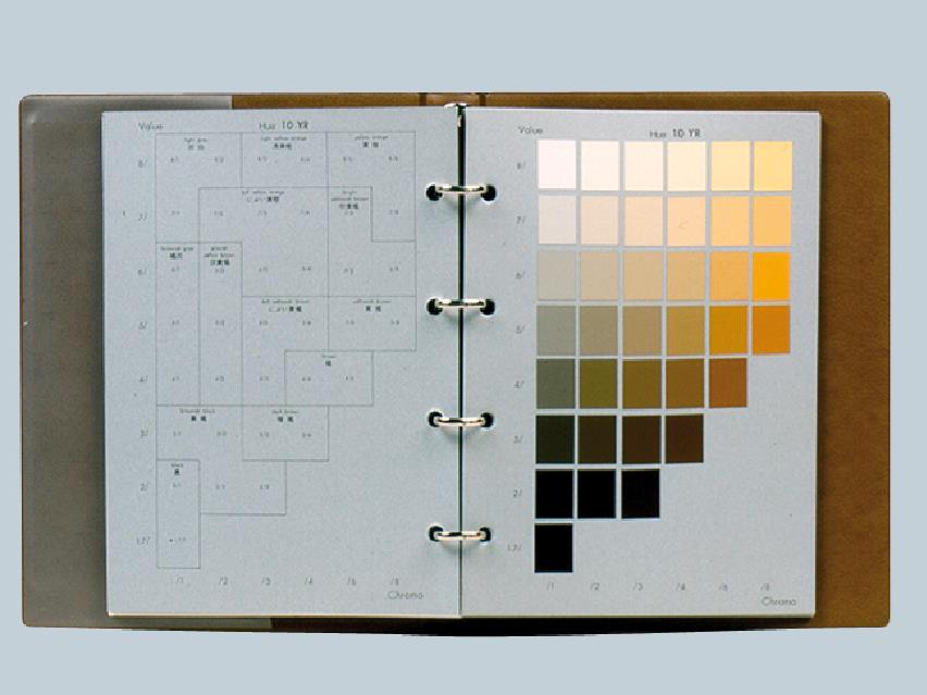 Soil colour book (Munsell) with 12 colour charts (5R/7.5R/10R/2.5YR/5YR/7.5YR/10YR/ 2.5Y/5Y/10Y-5GY/GLEY 1 and Gley 2) and 1 white chart. Water-resistant, washable pages, American version.