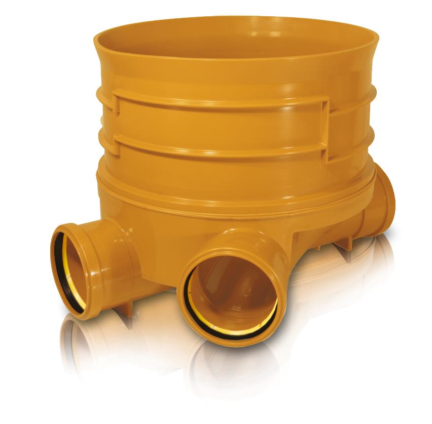 Inspection chamber with left/straight/right inlet + straight outlet.