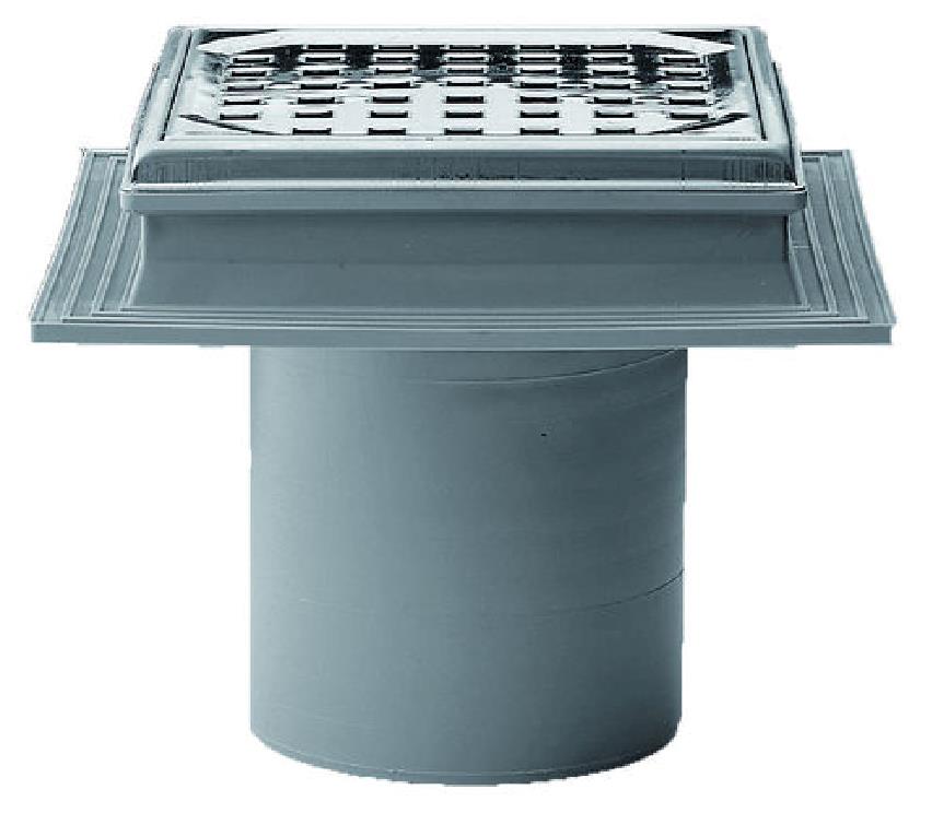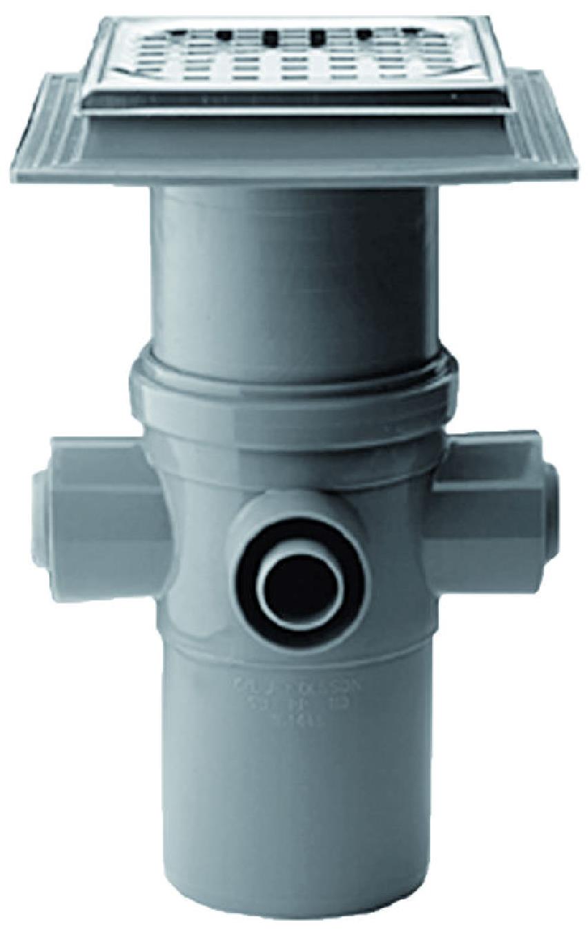 For tile and concrete floor. With 3 side inlets for 40 mm. pipe socket and 1 inlet for 32 mm.