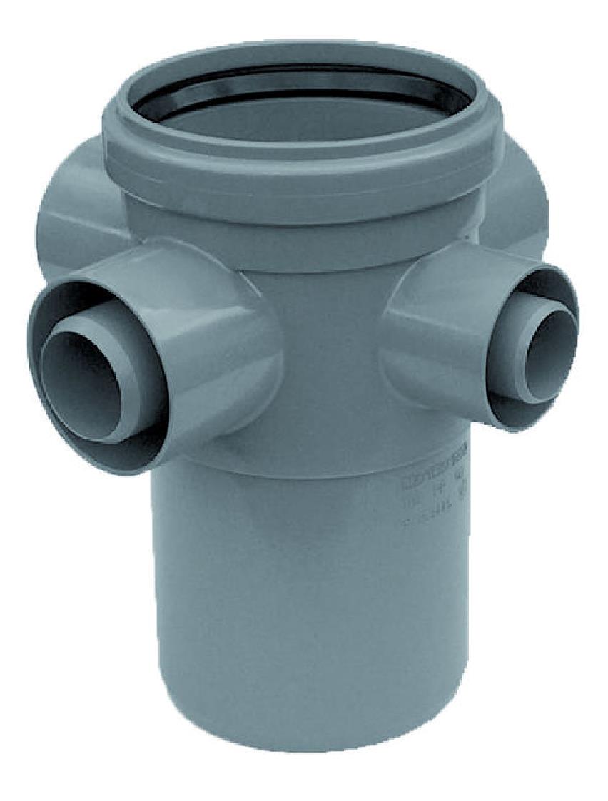PP side inlet with 3 side inlets for 40 mm. pipe socket and 1 inlet for 32 mm. pipe socket. Prepared for floor drain.