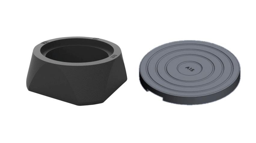 Concrete cone set for PVC riser pipes. Consists of 1 Ø315mm cone and top cover.