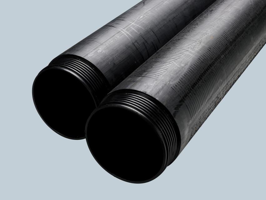 Black PE100 SDR 17 screens. Available with smooth threaded trapezoidal thread and spigot ends for stup welding or electro- fusion.