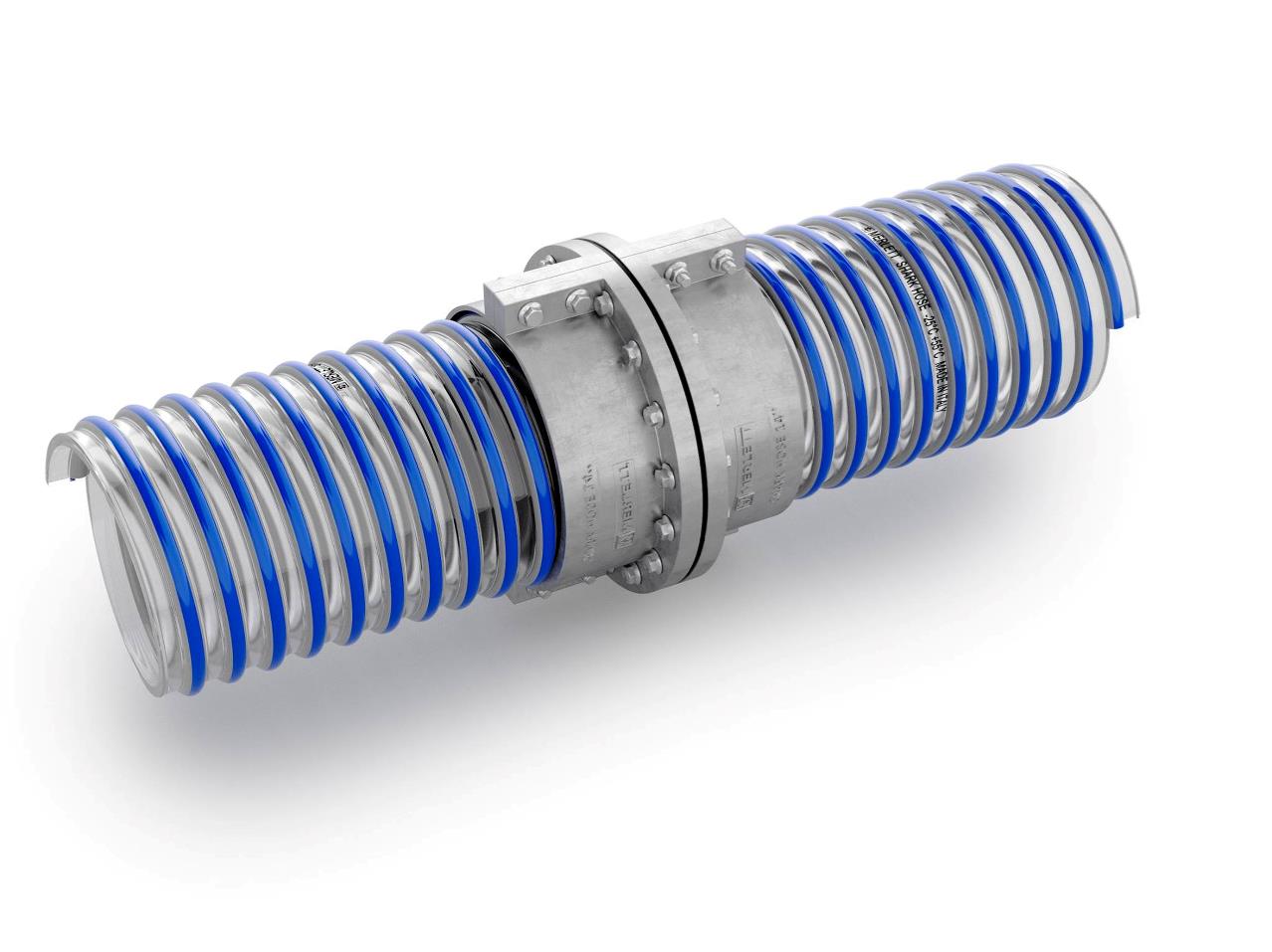 Shark hose. 10"/Ø254mm. Transparent PVC hose w/ blue PVC Spiral.