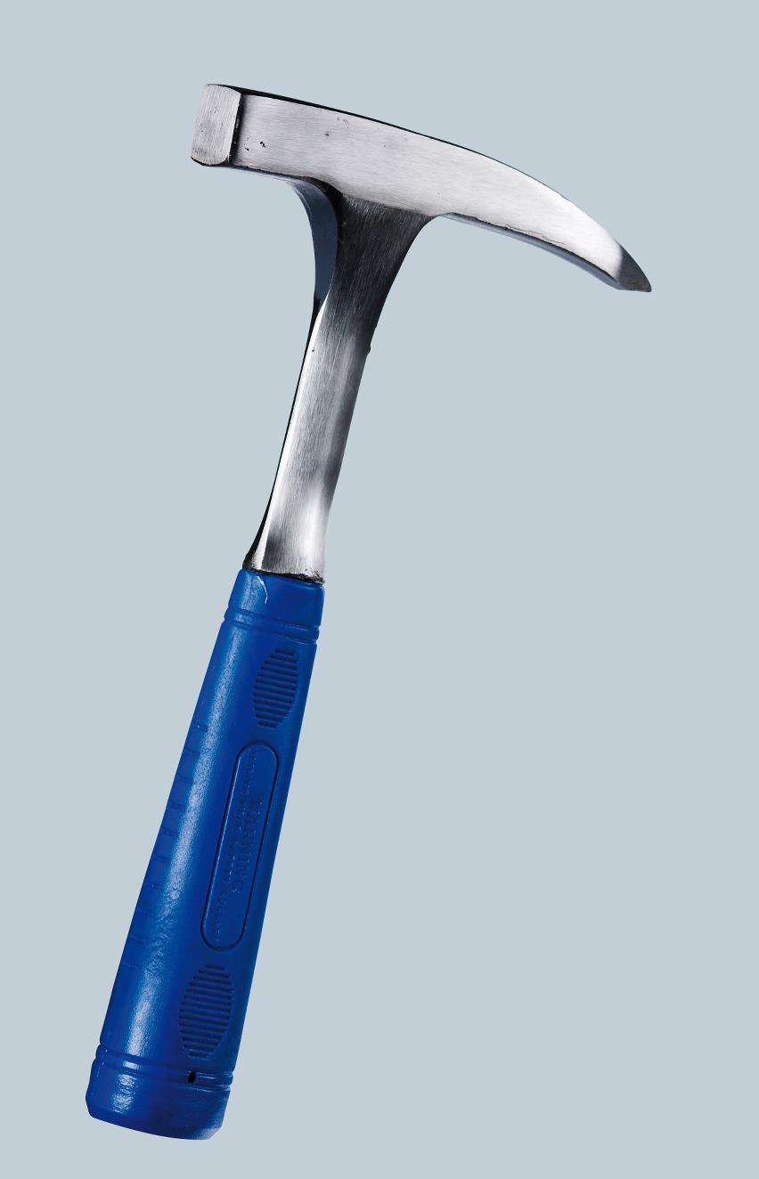 Geologist hammers can be obtained pointed or with a blade. They are used to obtain a rough indication of the hardness of soil or rock, the removing of fossils, scraping stones, emptying gouges and many other applications.