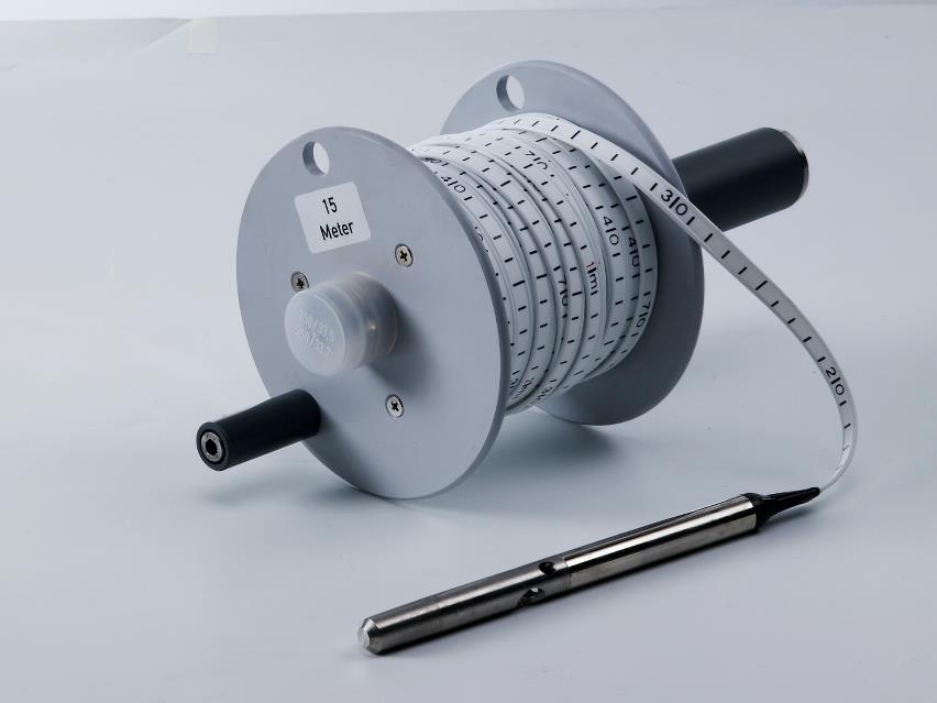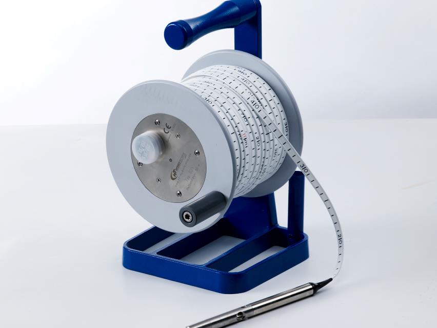 Water level and probe depth measurements are read off the Solinst durable flat tape, which is accurately laser marked each millimeter.